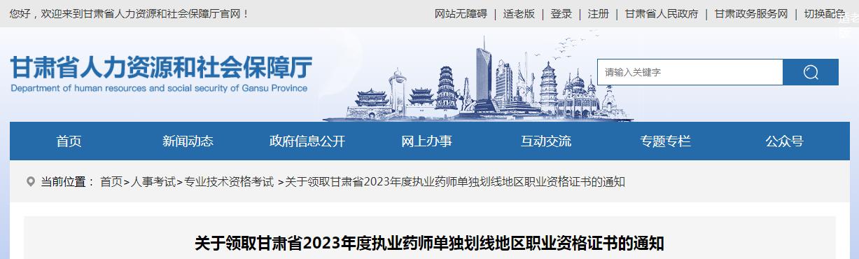 2024年5月27日,甘肃省人力资源和社会保障厅发布了《关于领取甘肃省2023年度执业药师单独划线地区职业资格证书的通知》,从中得知,2023年甘肃执业药师单独划线地区资格证书已经开始发放了,领取方式详见文内。