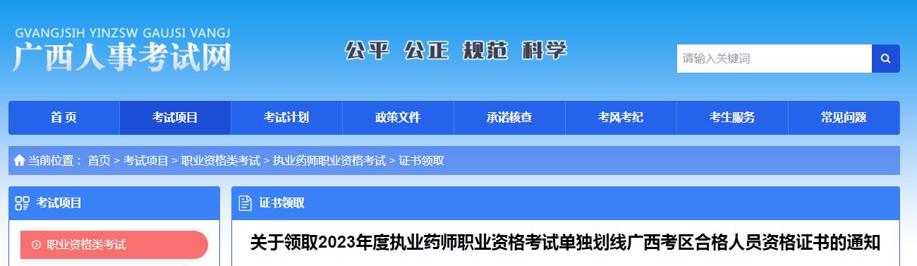 日前,广西人事考试网发布了《关于领取2023年度执业药师职业资格考试单独划线广西考区合格人员资格证书的通知》,从中了解到,2023年广西执业药师资格考试单独划线合格人员资格证书已经开始发放,考生可自行选择领取方式。