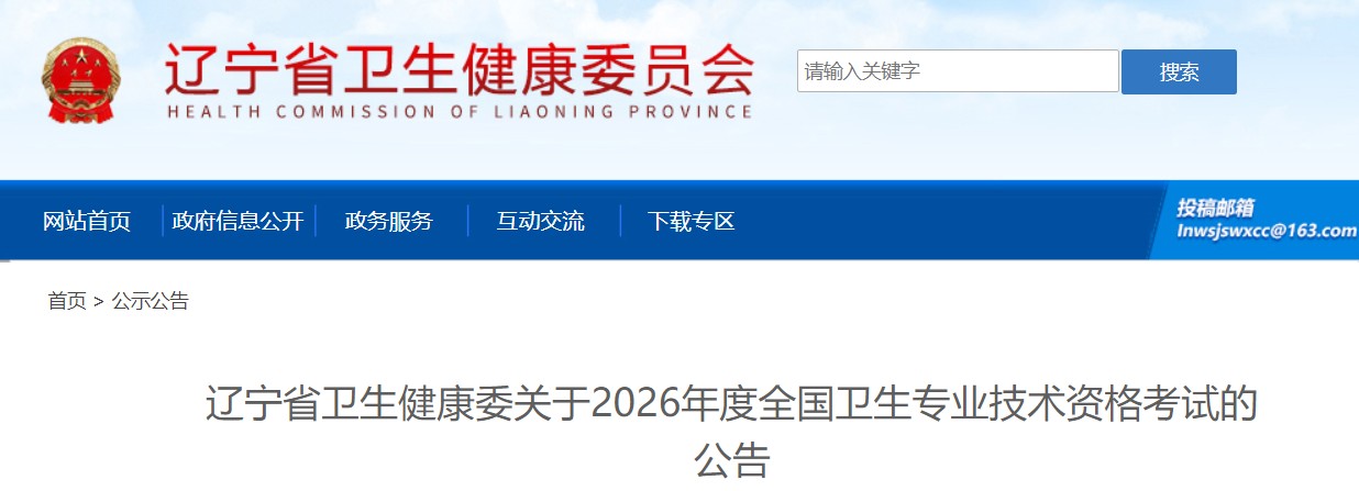 按照卫生专业技术资格考试办公室《关于2026年度卫生专业技术资格考试有关问题的通知》(卫考办发〔2025〕1号)和《国家卫生健康委人才交流服务中心关于2026年度卫生专业技术资格考试考务工作安排的通知》(卫人才发〔2025〕74号)要求,为做好2026年度全国卫生专业技术资格考试辽宁考区考务工作,现将有关事项公告如下: