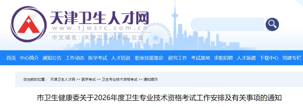 按照《卫生专业技术资格考试办公室关于2026年度卫生专业技术资格考试有关问题的通知》(卫考办发〔2025〕1号)、《国家卫生健康委人才交流服务中心关于2026年度卫生专业技术资格考试考务工作安排的通知》(卫人才发〔2025〕74号)要求,为保证考试顺利进行,现将我市2026年度卫生专业技术资格考试工作安排及有关事项通知如下: