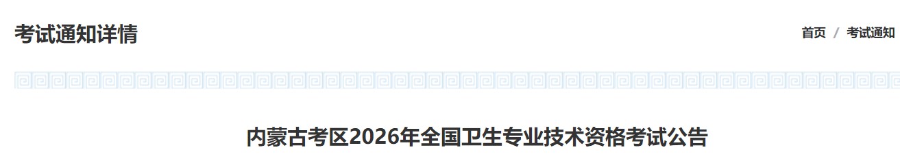 根据《卫生专业技术资格考试办公室关于2026年度卫生专业技术资格考试有关问题的通知》(卫考办发〔2026〕1号)、《国家卫生健康委人才交流服务中心关于2026年度卫生专业技术资格考试考务工作安排的通知》(卫人才发〔2025〕74号)文件要求,结合考区实际,为做好2026年全国卫生专业技术资格考试内蒙古考区考试考务工作,现将有关事项公告如下: