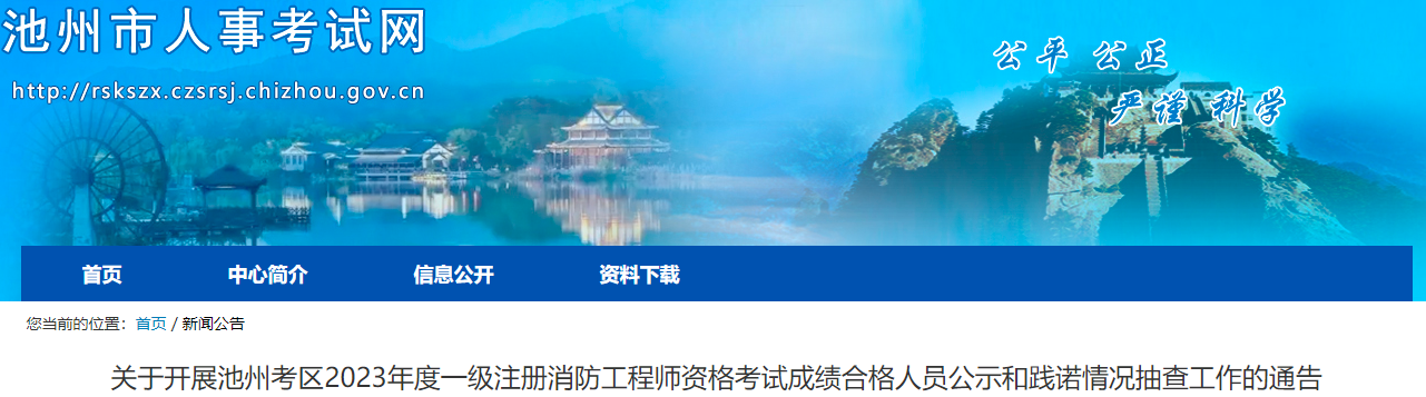 近日,池州市人事考试网发布了《关于开展池州考区2023年度一级注册消防工程师资格考试成绩合格人员公示和践诺情况抽查工作的通告》,其中明确池州共有12人取得一消合格成绩,并将对部分合格人员进行践诺情况抽查。