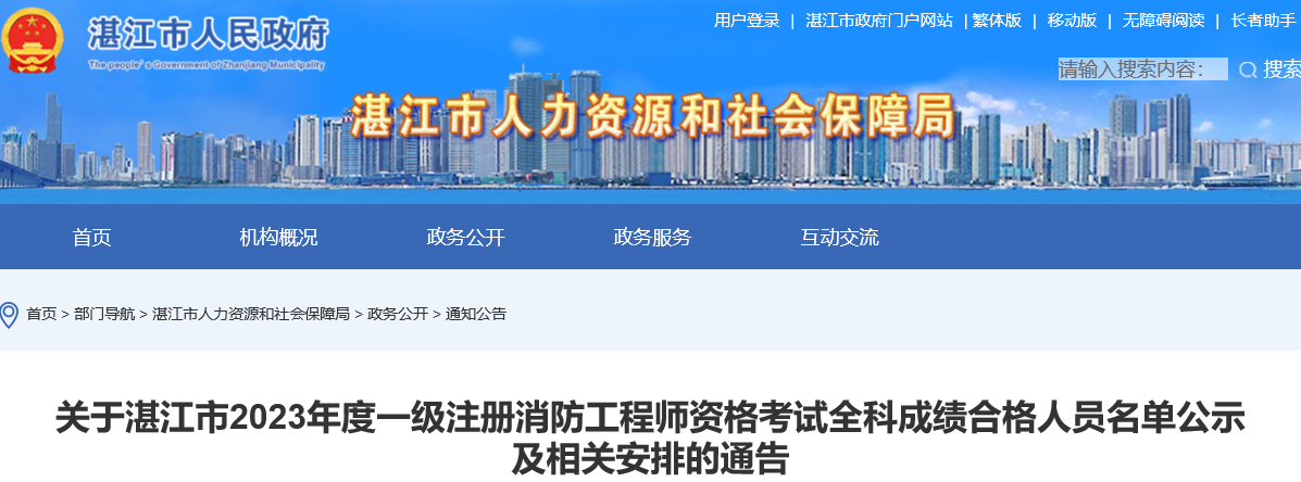 湛江市人力资源和社会保障局发布了《关于湛江市2023年度一级注册消防工程师资格考试全科成绩合格人员名单公示及相关安排的通告》,其中明确湛江市共有36人取得一级消防工程师合格成绩,相关人员可在公示期申请证书直邮。