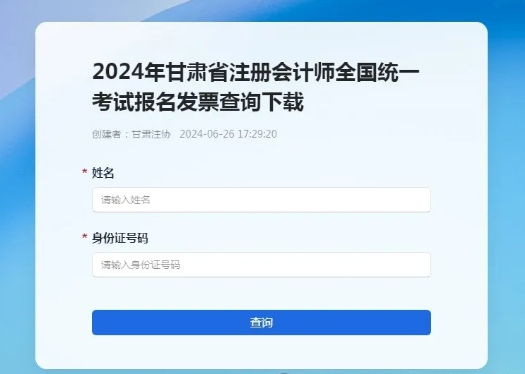 关于2024年甘肃省注册会计师全国统一考试报名费票据领取的通知