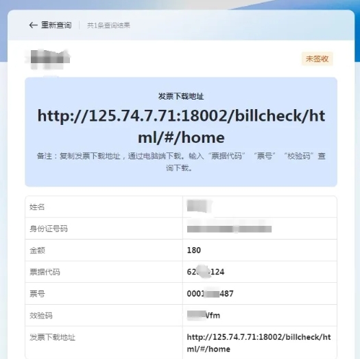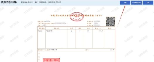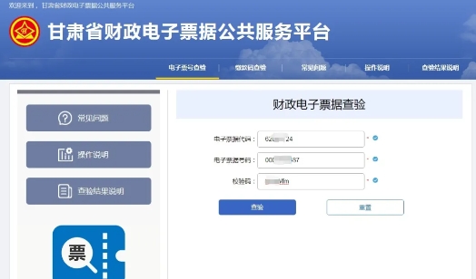 输入对应的“票据代码”“票号”“校验码”查验下载