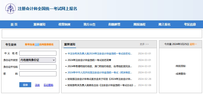 电脑或手机登录“注册会计师全国统一考试网上报名系统”。