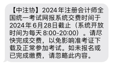 中注协又发2024年cpa交费截止提醒了,还没交费的考生注意了:6月28日20:00后,cpa交费通道就将关闭,没有按时交费视为报名失败,无法参与2024年的考试。