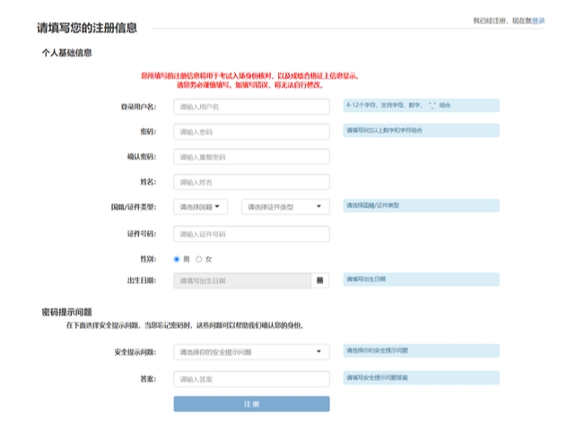 注册流程:点击报名首页右上角“立即注册”-填写注册信息-注册