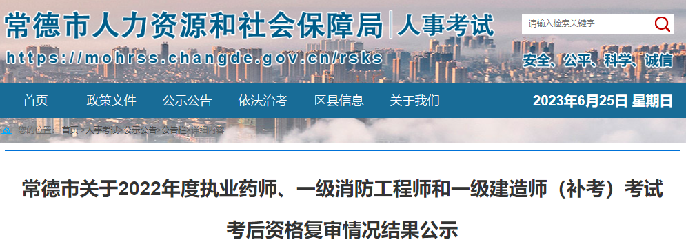 近日,常德市人力资源和社会保障局发布了《常德市关于2022年度执业药师、一级消防工程师和一级建造师(补考)考试考后资格复审情况结果公示》,其中明确一级消防工程师考后审核已结束,审核通过人员名单公示将于2023年6月29日截止。
