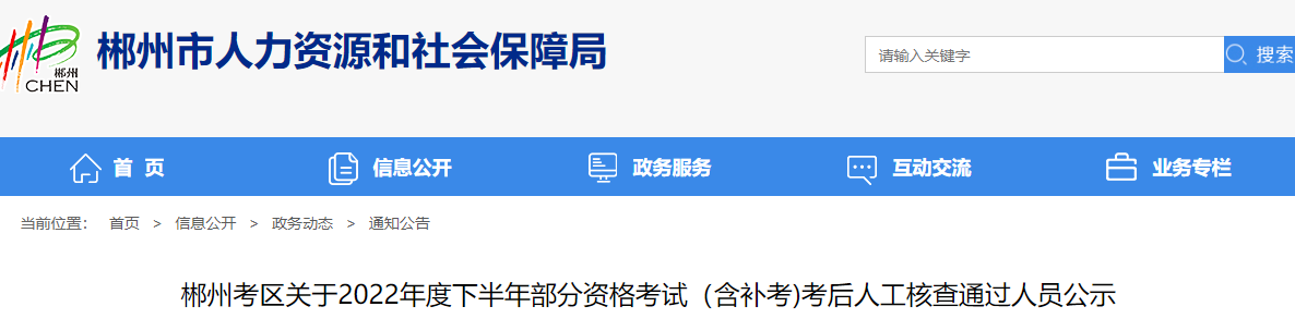 根据湖南省人社厅2023年7月4日《关于2022年度下半年部分资格考试(含补考)考后人工核查补办公告》精神,郴州考区于2023年7月18日完成了人工核查工作,现将本次人工核查通过人员予以公示(名单附后)。