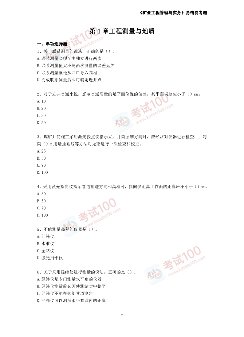 开始使用考试100通关考题