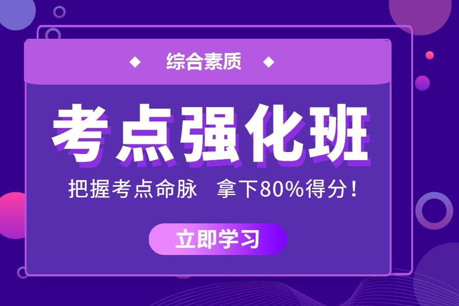 1.本课程为强化阶段必学的高频考点讲解课程,资深导师结合多年成功辅导经验,聚焦高频考点,切实掌握考试的命题思路,准确预测中考试方向,摸准出题思路,心中有谱考试不慌! 2.课程综合通过率约96%左右!