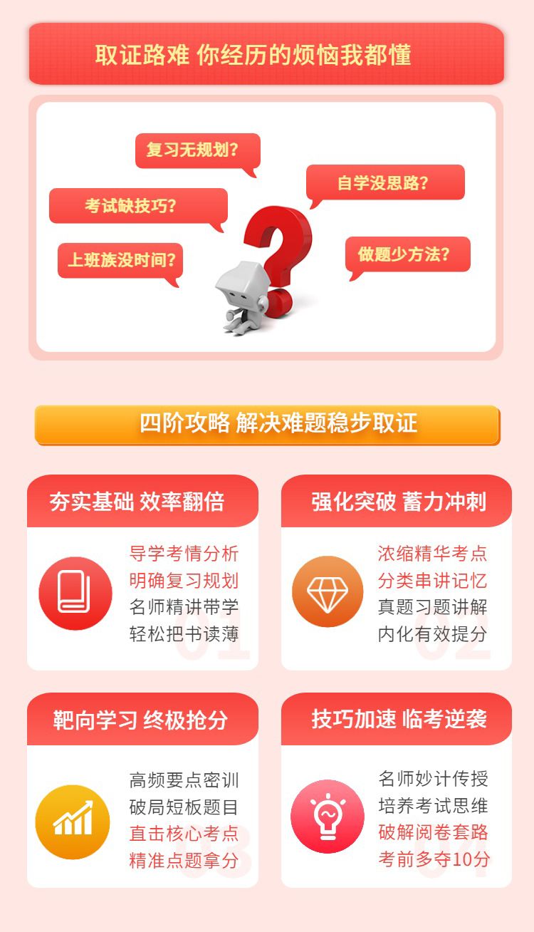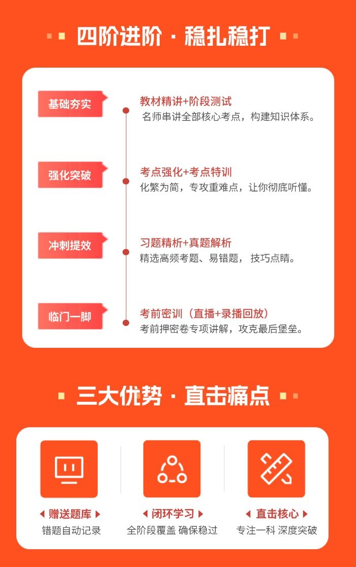 1.本课程为单科套餐班(精讲+考点强化+习题课程+考前密训+真题课程等)的组合配套! 特色全名师授课;分阶段学习;逐步浓缩考点,直击考试要点! 2.感谢购买,考试100作为公益企业10年来已援建10+2所希望小学。 3.课程使用时间为截止到考试当天,不过可以免费重修一次。