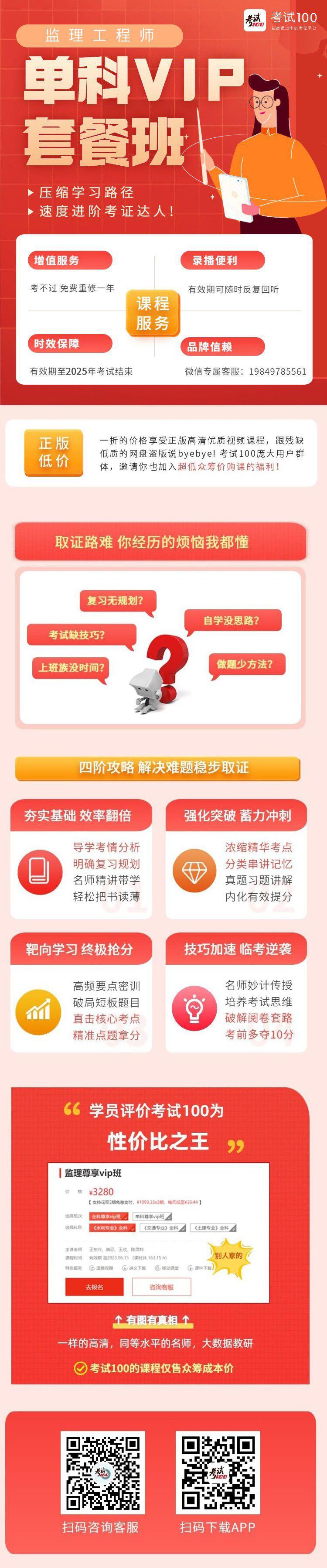 1.本课程为单科套餐班(精讲+习题课程等)的组合配套! 特色全名师授课;分阶段学习;逐步浓缩考点,直击考试要点! 2.感谢购买,考试100作为公益企业10年来已援建10+2所希望小学。 3.课程使用时间为截止到考试当天,不过可以免费重修一次。