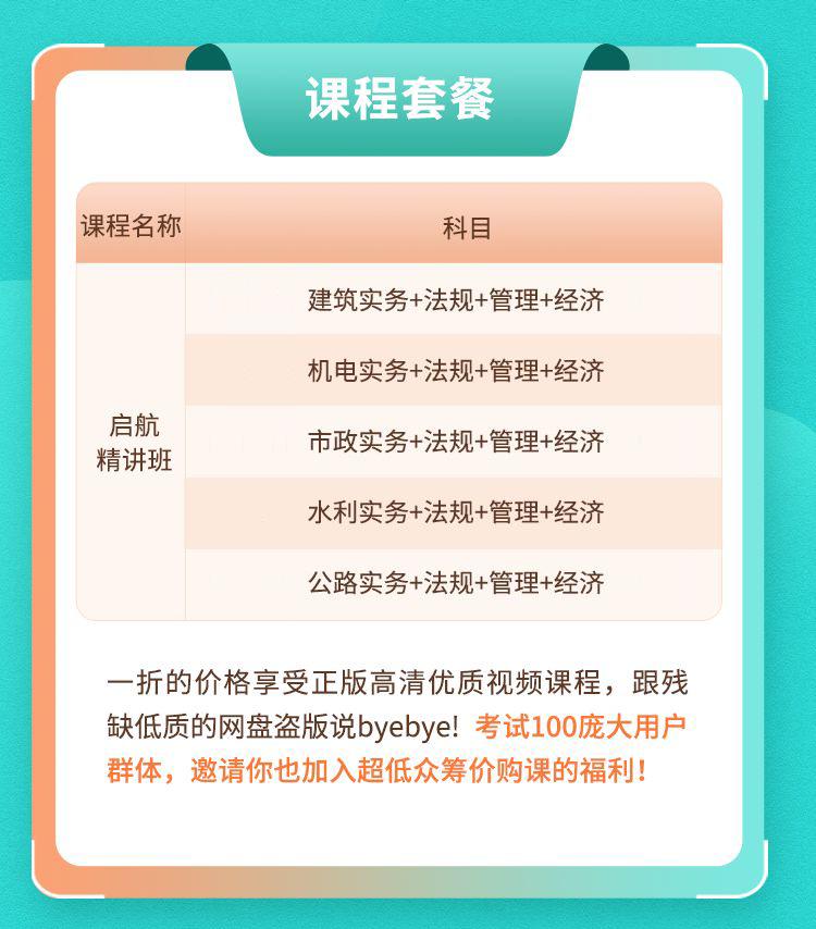 1.该课程为最新一建课程专业实务+管理+法规+经济科的精讲套餐班课程,按照最新考纲,系统梳理教材知识点,针对性分析与讲解,构建学习体系,掌握核心考点,打牢备考基础,通关靠谱! 2、有效期为:为一年,开通本课程会员即可观看该课程全部视频内容。 3、感谢购买,考试100作为公益企业10年来已援建10+2所希望小学。
